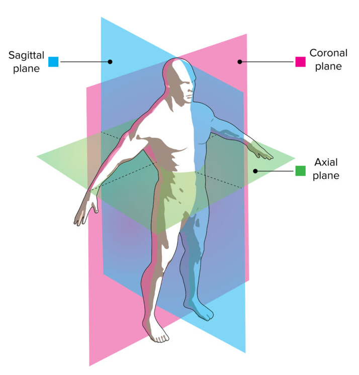 - Le plan transversal divise le corps en deux moitiés supérieure et inférieure pour les mouvements de rotation tels que les torsions ou les coups de hache.